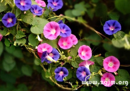 牵牛花的花语是:爱情永固、冷静、虚幻。相传过去满载这种花的牛车边走边卖,牵牛花由此得名。俗话说:“秋赏菊,冬扶梅,春种海棠,夏养牵牛。”可见,在夏天的众多花草中,牵牛花也算得上是宠儿了。
