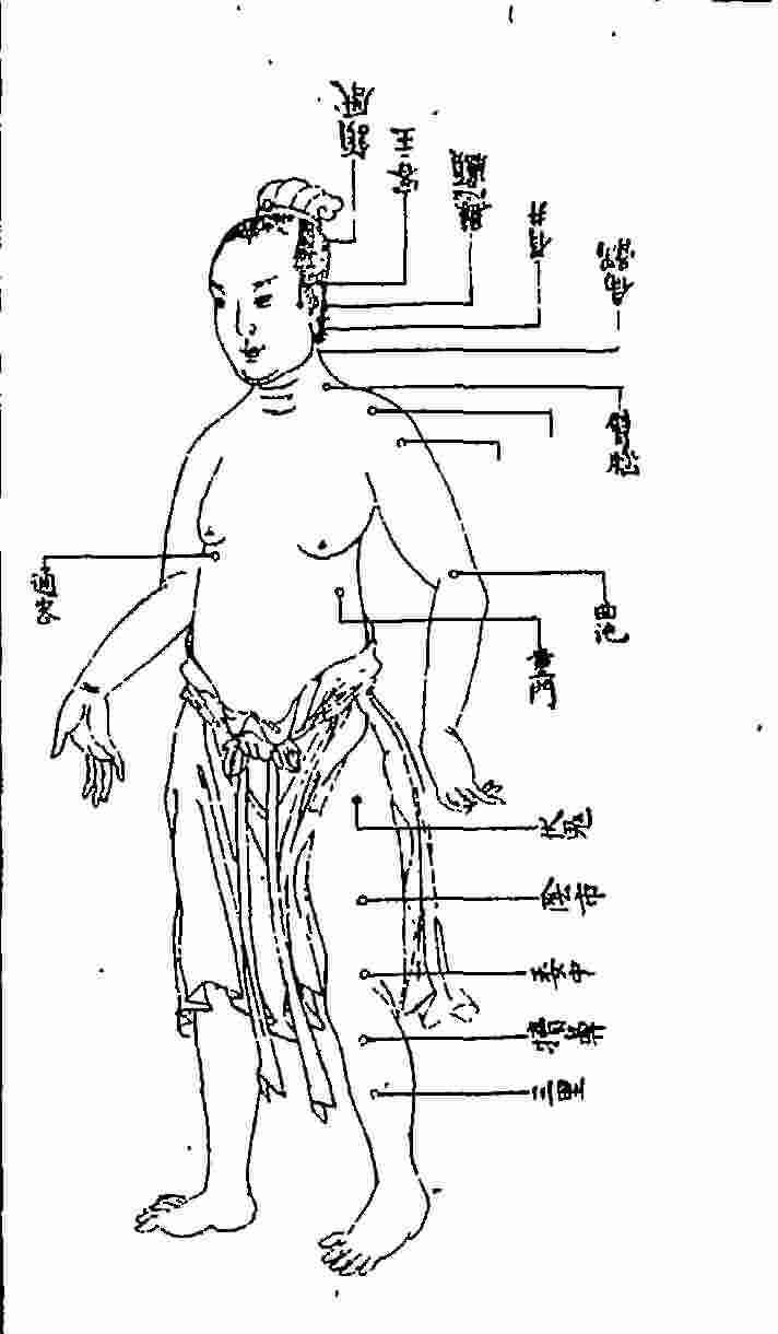 伏兎二穴,在膝上六寸、起肉。正跪坐取之。足陽明脈氣所發。治風勞,痺逆,狂邪,膝冷,手節攣縮,身隠疹,腹脹、少氣,婦人八部諸病。針入三分。禁灸。