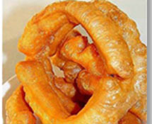 北京风味小吃。本品色泽深黄,形如手镯,焦香酥脆,风味独特。