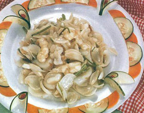 主料: 对虾200克 白果(干)75克 茭白75克 百合75克