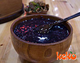 '1.黑米淘洗干净,在冷水里浸泡3小时,捞起,沥干水分。