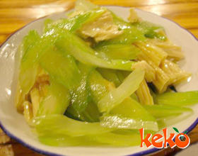 腐竹拌芹菜:'1.将水发腐竹洗净切成等段或象眼块;2.芹菜摘去老筋及叶,洗净切等段;3.芹菜、腐竹同入开水锅中焯一下,捞出用凉水过一遍,沥去水分,晾凉;4.芹莱、...