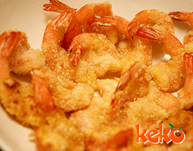 清炸凤尾虾:'1.将中虾去头、皮,留尾,放墩上由脊部片开,腹部相连成一大扇,再用刀尖先斩断筋。再用刀背将肉捶松,展平,撒料酒、盐、味精稍腌。然后再撒一层干面...