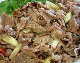 3.羊肉中有很多膜,切丝之前应先将其剔除,否则炒熟后肉膜硬,吃起来难以下咽。