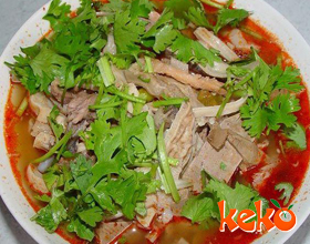 羊杂碎汤:'1.将鲜羊肚洗净,揩掉油,放至即将开的水锅里烫一下,捞出,放案板上刮去肚毛,洗净备用;羊肥肠反复洗净,用筷子穿翻地来,盘起用绳子拴住;将羊心洗... 详细介绍