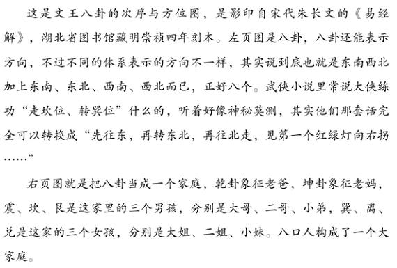 八卦还能表示方向,不过不同的体系表示的方向不一样,其实说到底也就是东南西北加上东南、东北、西南、西北而已,正好八个。武侠小说里常说大侠练功“走坎位、转巽位”什么的,听着好像神秘莫测,其实他们那套话完全可以转换成“先往东,再转东北,再往北走,见第一个红绿灯向右拐……”